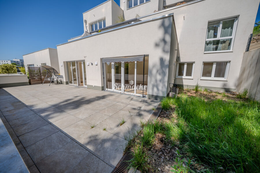 Das Besondere an der Wohnung Nr.6 ist, dass direkt im Anschluss an die große Terrasse ein kleiner eigener Garten grenzt.